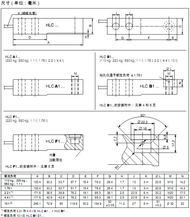 额定量程: 220Kg,500Kg,1.1T,1.76T,2.2T,4.4T,10T