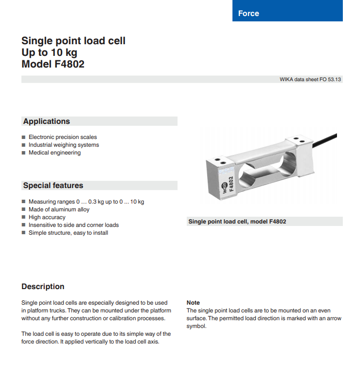 德国WIKA威卡系列产品,德国WIKA F4802-(0.3kg,0.5kg,1kg,1.5kg,2kg,3kg,4kg,5kg,10kg)单点式nowgoal365live score_365bet体育官网网址_365直播体育 传感器。