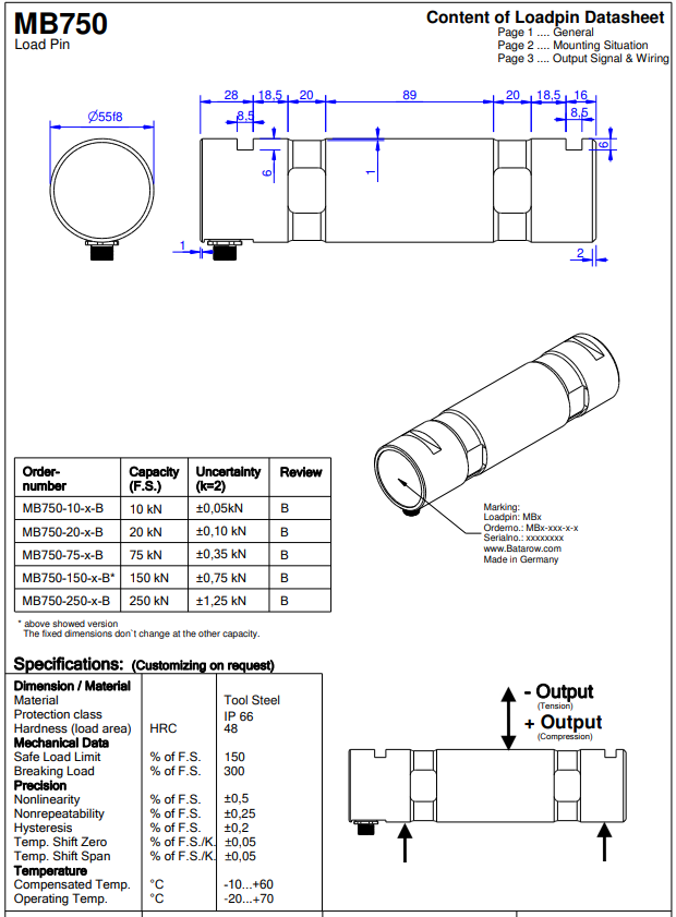 德国Batarow系列nowgoal365live score_365bet体育官网网址_365直播体育 传感器,Batarow MB750-(10kN,20kN,75kN,150kN,250kN)轴销式传感器。