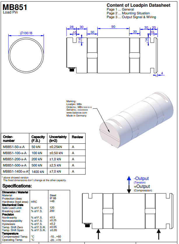 德国Batarow MB146-(50kN,200kN,500kN,1000kN,2000kN,4500kN)轴销式传感器