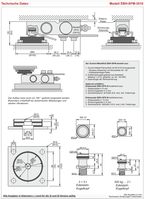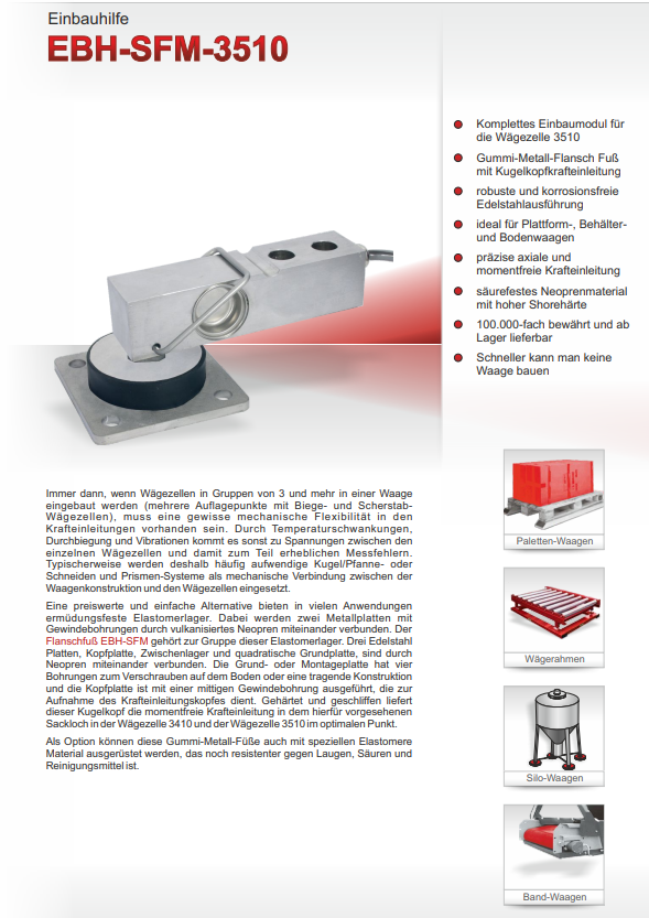 作为一种选择,这些橡胶金属脚也可以配备一种特殊的弹性材料,这种材料对碱、酸和清洁剂具有更强的抵抗力。EBH-SFE 型号可作为特殊类型提供,用于更大的高度调节范围。