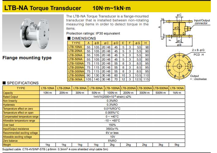 LTB-NA扭矩传感器是一种法兰安装式传感器,可安装在非旋转测量物件之间用以检测物件的扭矩。