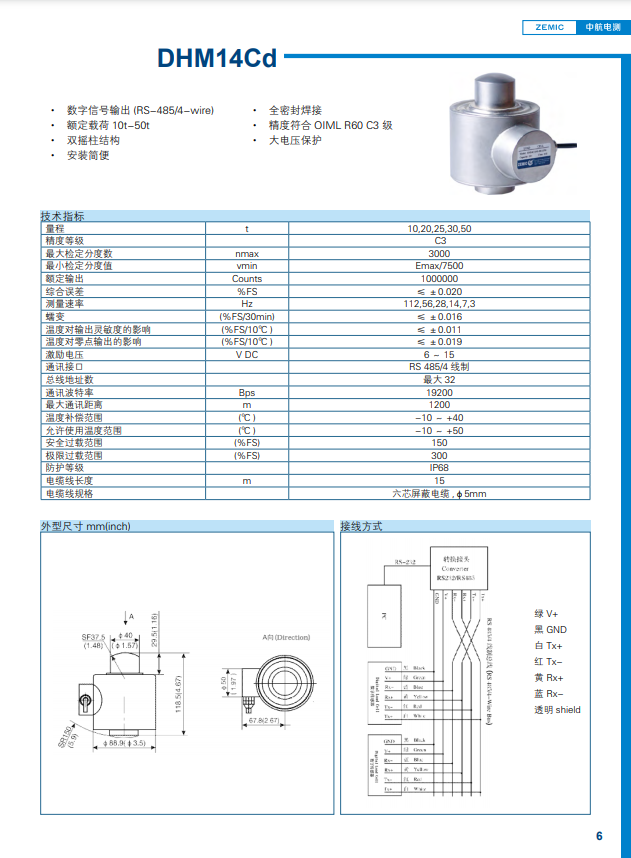 广州锐拓10年行业经验销售美国Zemic中航电测系列产品,Zemic DHM14Cd-C3-(10t~50t)nowgoal365live score_365bet体育官网网址_365直播体育 传感器。