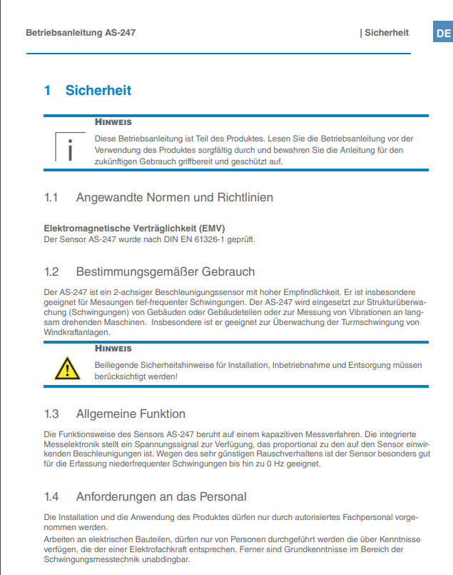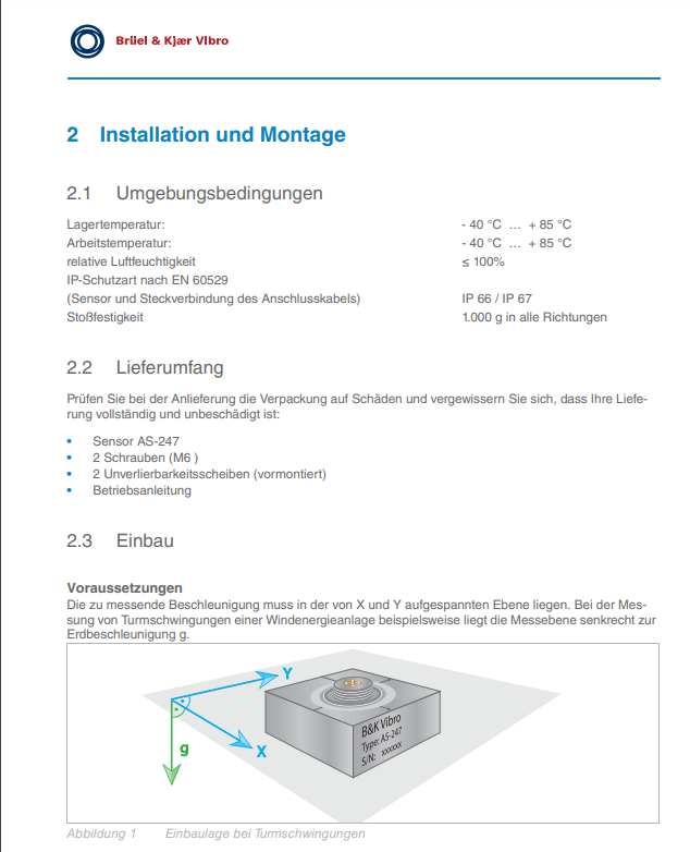 凭借 0 Hz – 1.8 kHz 的测量范围和 1000 mV/g 的高灵敏度,该传感器非常适合测量低频振动,例如塔架振动、缓慢旋转的机器或结构振动范围内的其他测量任务。