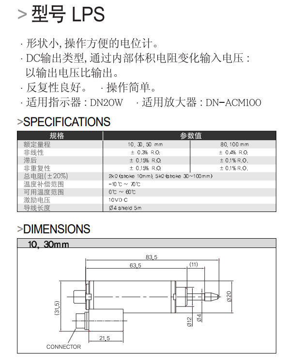 广州锐拓10年行业经验销售韩国DACELL系列位移传感器,DACELL LPS-(10mm~100mm) 位移传感器。