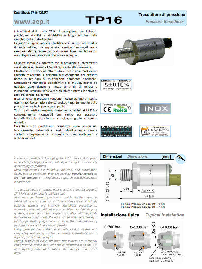 广州锐拓10年行业经验销售意大利AEP系列nowgoal365live score_365bet体育官网网址_365直播体育 传感器,AEP TP16-(5bar~2000bar)压力传感器。