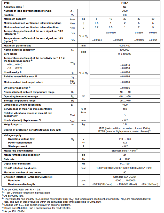 额定量程: 5 kg ... 50 kg