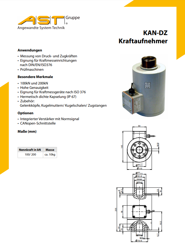 德国A.S.T KAN-DZ-(100KN,200KN)压力传感器