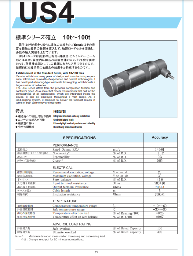 日本Yamato大和系列产品,日本Yamato US4-(10T,20T,30T,50T,70T,100T)nowgoal365live score_365bet体育官网网址_365直播体育 传感器。