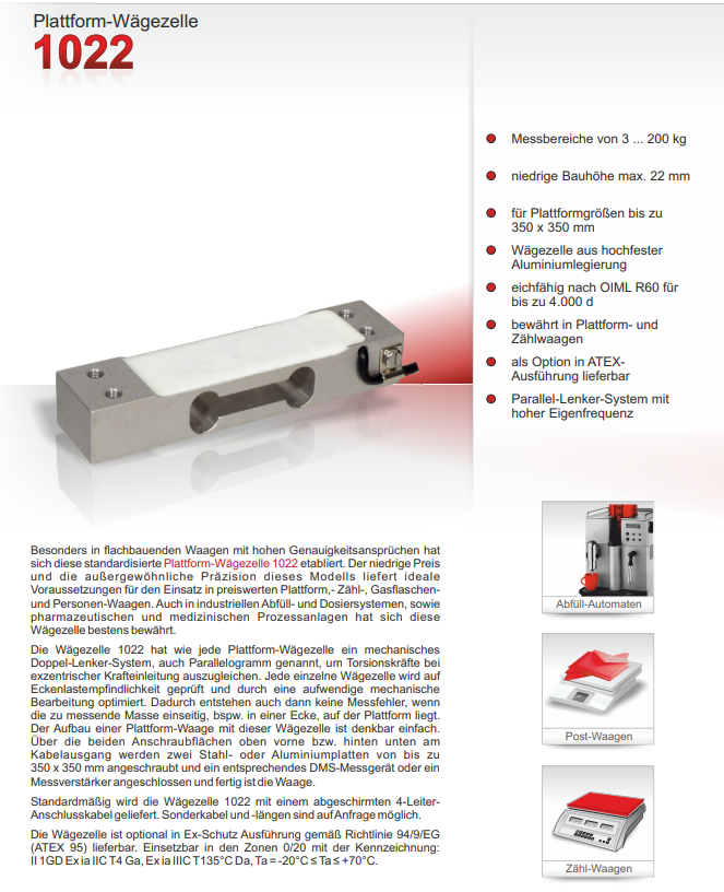 测量范围从 3 到 200 kg,高度最大 22 mm