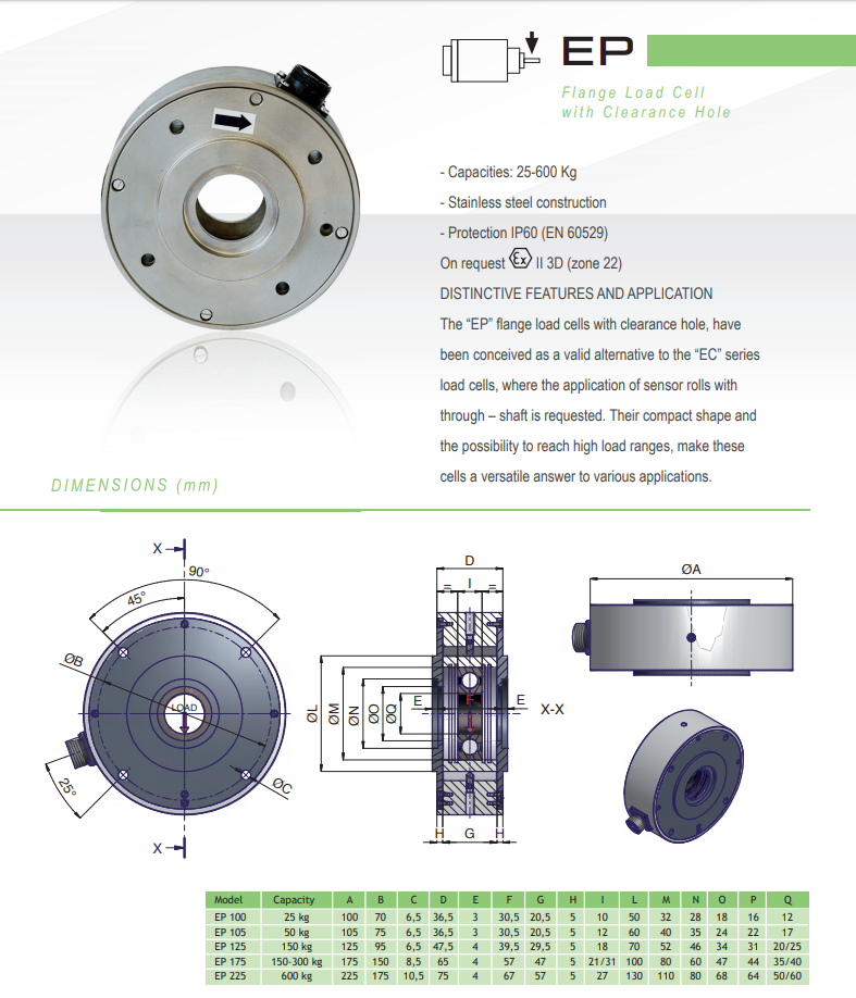 带有间隙孔的“ep”法兰测力传感器被认为是“ec”系列测力传感器的有效替代品,该系列测力传感器要求应用带贯通轴的传感器辊。