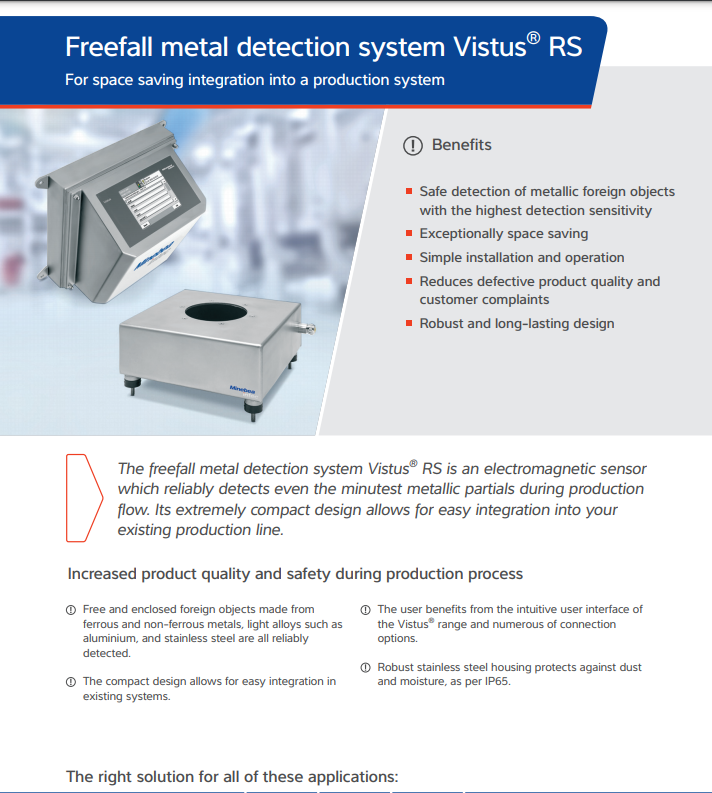 广州锐拓10年行业经验销售德国Minebea Intec茵泰科系列产品,Minebea Intec Vistus RS-金属检测机。