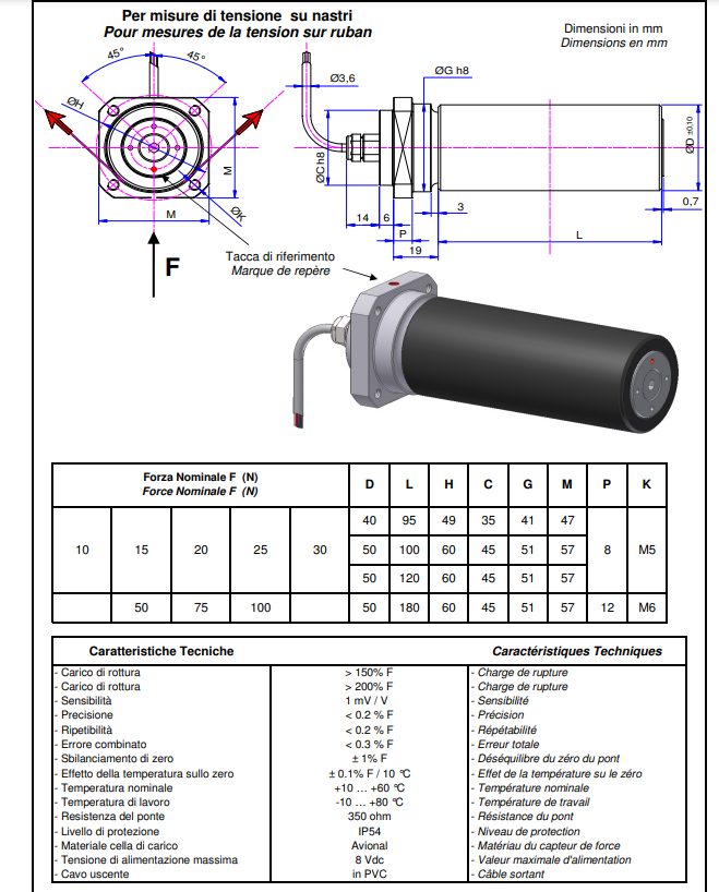 用于悬臂式测量 10 N 至 100 N 力的仪表滚轮。