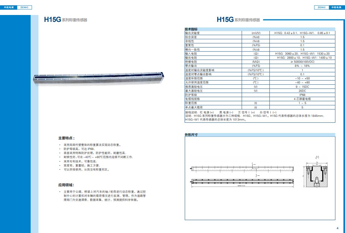 广州锐拓10年行业经验销售美国Zemic中航电测系列产品,Zemic H15G-C3-(1t~5t)窄条形传感器。