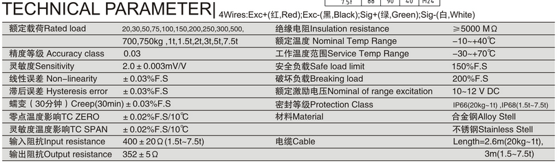 l 量程可选:20-1000Kg,1T,1.5T,2T,2.5T,3T,5T,7.5T