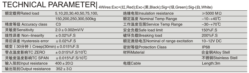 HSX-ASS-(5kg~500kg)传感器产品规格