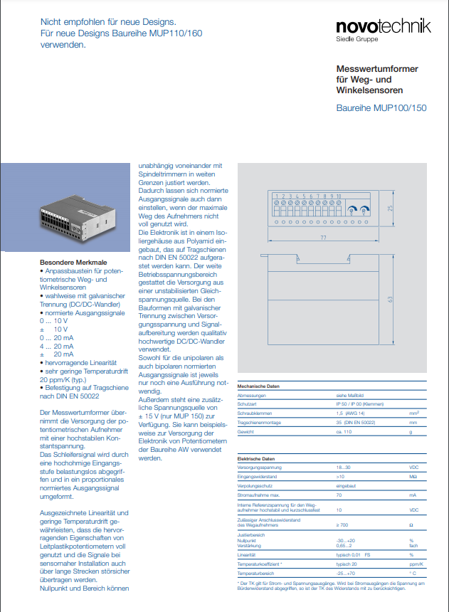 德国Novotechnik MUP100/150-测量放大器