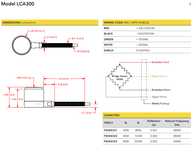 传感器(微型)采用 17-4PH 不锈钢制成,重量为 2,000 磅至 5,000 磅,表面半径增大以降低偏心加载的可能性。