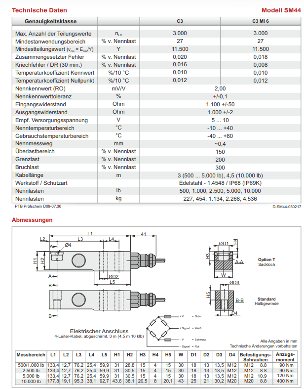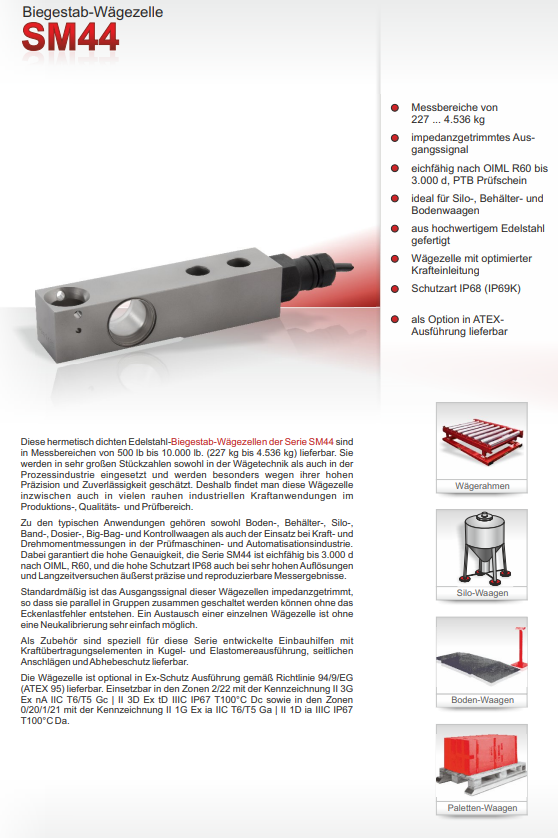 典型应用包括地板、容器、筒仓、皮带计量、大袋和自动检重秤以及用于测试机器和自动化行业的力和扭矩测量。高精度保证,SM44系列可校准根据 OIML、R60 和 IP68 的高防护等级,高达 3000D,即使在非常高分辨率和长期测试的情况下,测量结果也非常精确和可重复。