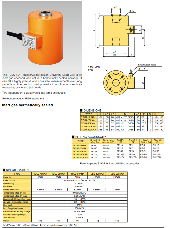 日本TML TCLU-NA-(10kN,20kN,50KN,100KN,200KN)荷重传感器